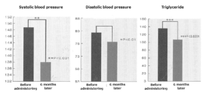 ・収縮期血圧が飲用前の平均約150から138に下がりました。